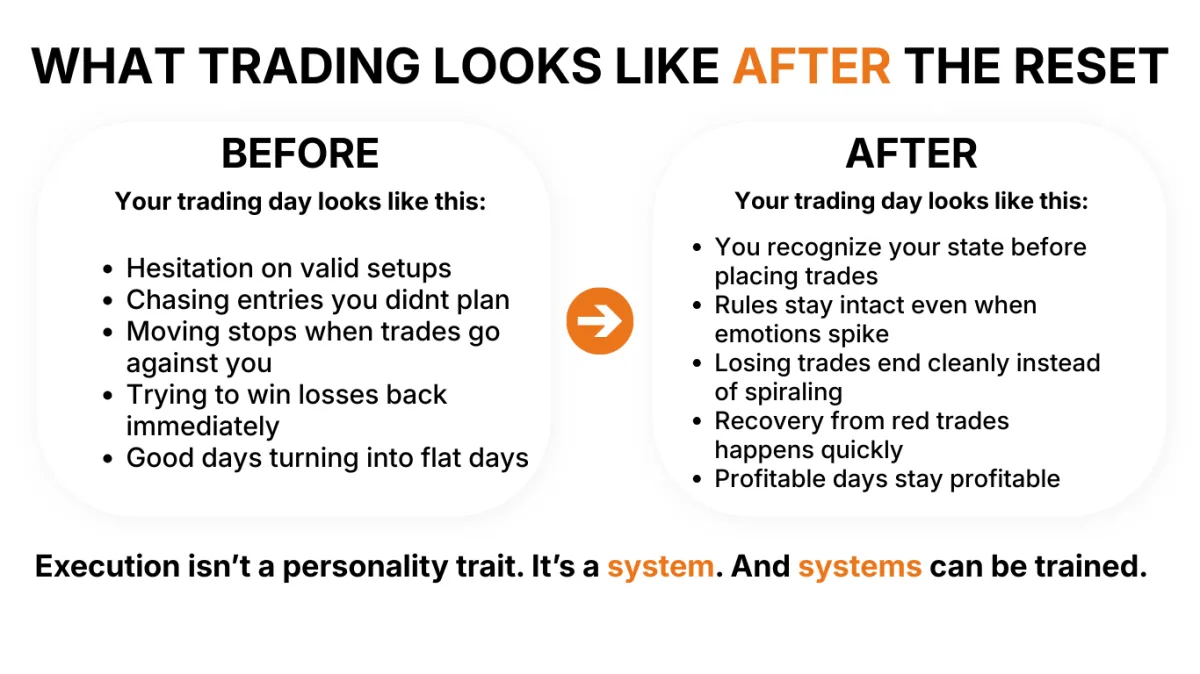 If you’re already consistent and emotionally stable, the Reset will still help you tighten execution—but it’s built primarily for inconsistency and rule breaks.